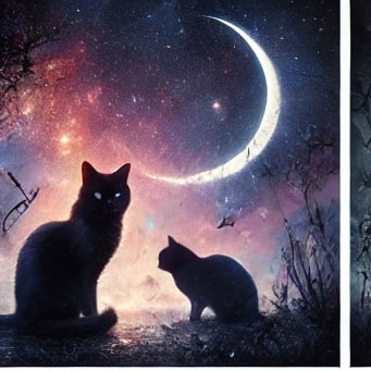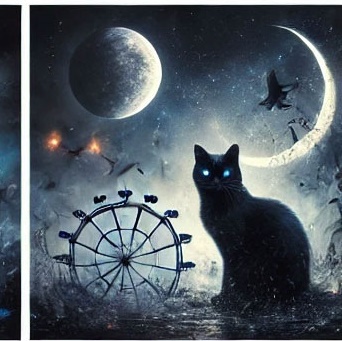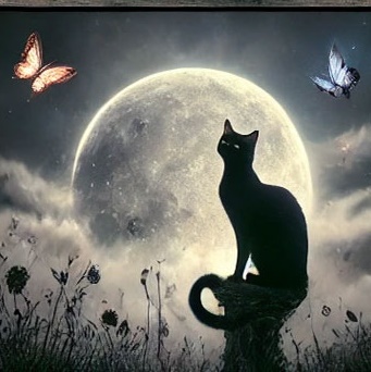 27. 검은 고양이가 달빛 아래에서 고요하게 있는 꿈 (길몽) – 달빛 아래 차분하게 있는 모습은 감성적 안정과 영적 치유를 의미합니다.