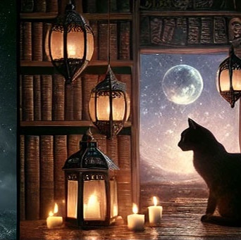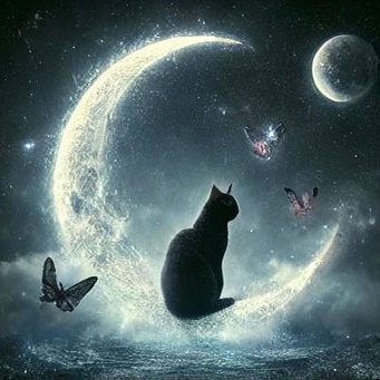 27. 검은 고양이가 달빛 아래에서 고요하게 있는 꿈 (길몽) – 달빛 아래 차분하게 있는 모습은 감성적 안정과 영적 치유를 의미합니다.