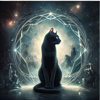 26. 검은 고양이가 부드러운 빛 속에 나타나는 꿈 (길몽) – 따뜻한 빛과 함께 나타나는 모습은 치유와 내면의 성장, 긍정적 변화를 상징합니다.