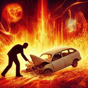 23. 차량이 붕괴되어 산산조각나는 꿈 (흉몽) – 사고로 차량이 완전히 붕괴되는 장면은 심각한 재산 손실과 통제 불능의 혼란을 경고하며, 큰 위기를 대비해야 함을 의미합니다.