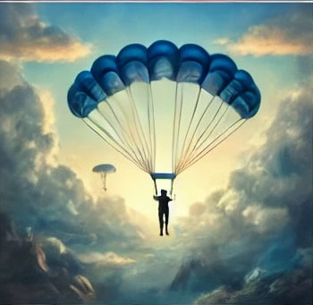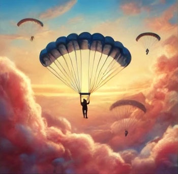 17. 낙하산이 불안정하게 흔들리는 꿈 (흉몽) – 불안정한 낙하산은 계획의 미흡함과 내면의 불안이 커질 위험을 경고합니다.