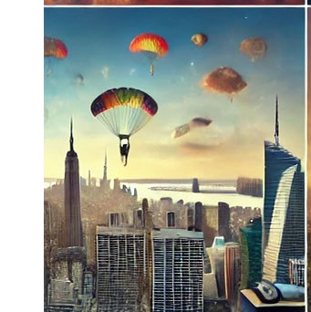23. 낙하산을 타고 도시 위를 날아다니는 꿈 (길몽) – 도시 위를 나는 모습은 사회적 성공과 활발한 인간관계, 그리고 새로운 기회가 다가올 징조를 의미합니다.