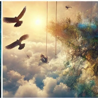 16. 낙하산을 타고 구름 사이를 날아다니는 꿈 (길몽) – 구름 사이를 나는 모습은 영적 성장과 내면의 평화를 암시하며, 도전에 대한 긍정적 태도를 나타냅니다.