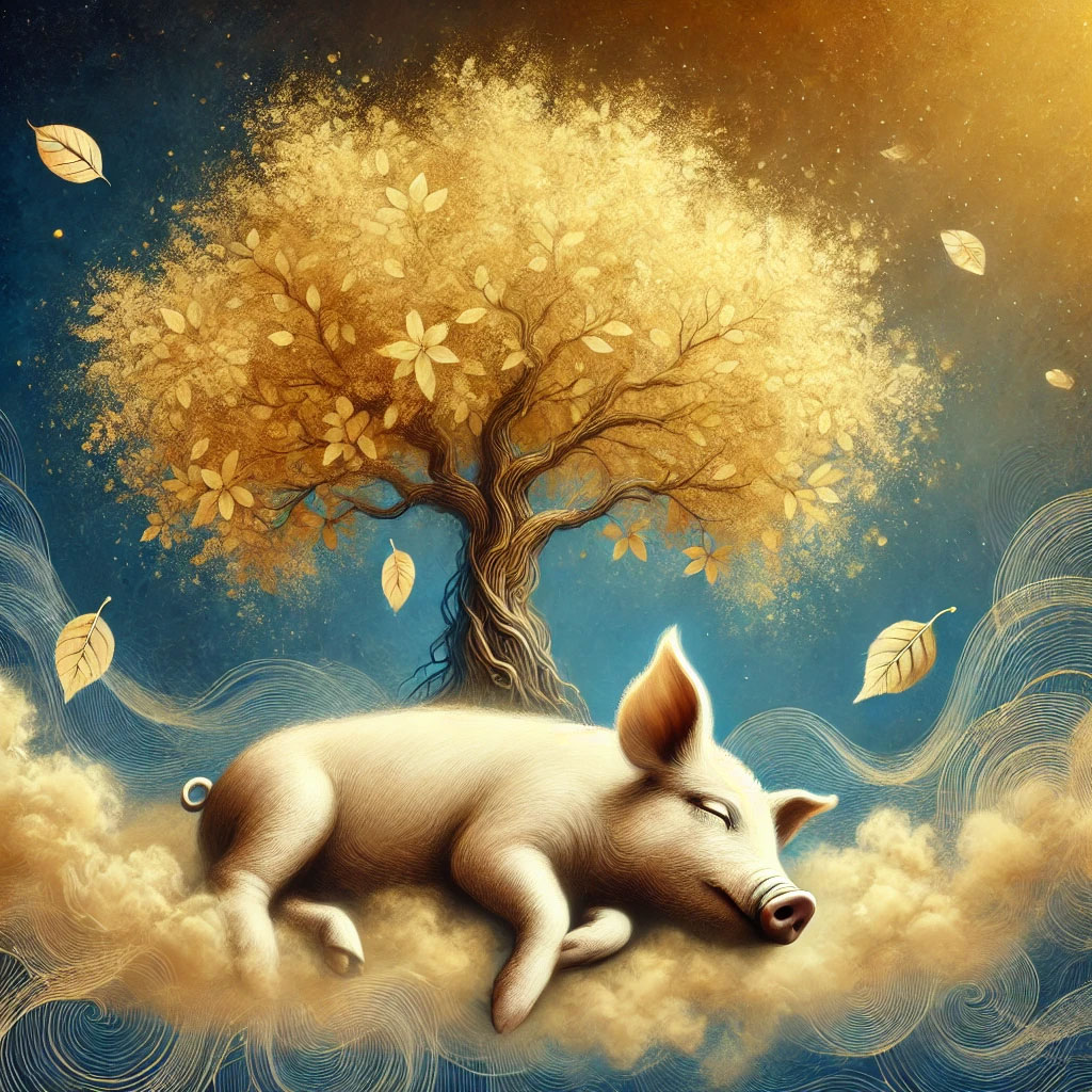 39. 돼지가 평화롭게 잠자는 꿈:안정과 평화를 상징하며, 건강과 재물운이 좋은 방향으로 흘러감을 나타냅니다.