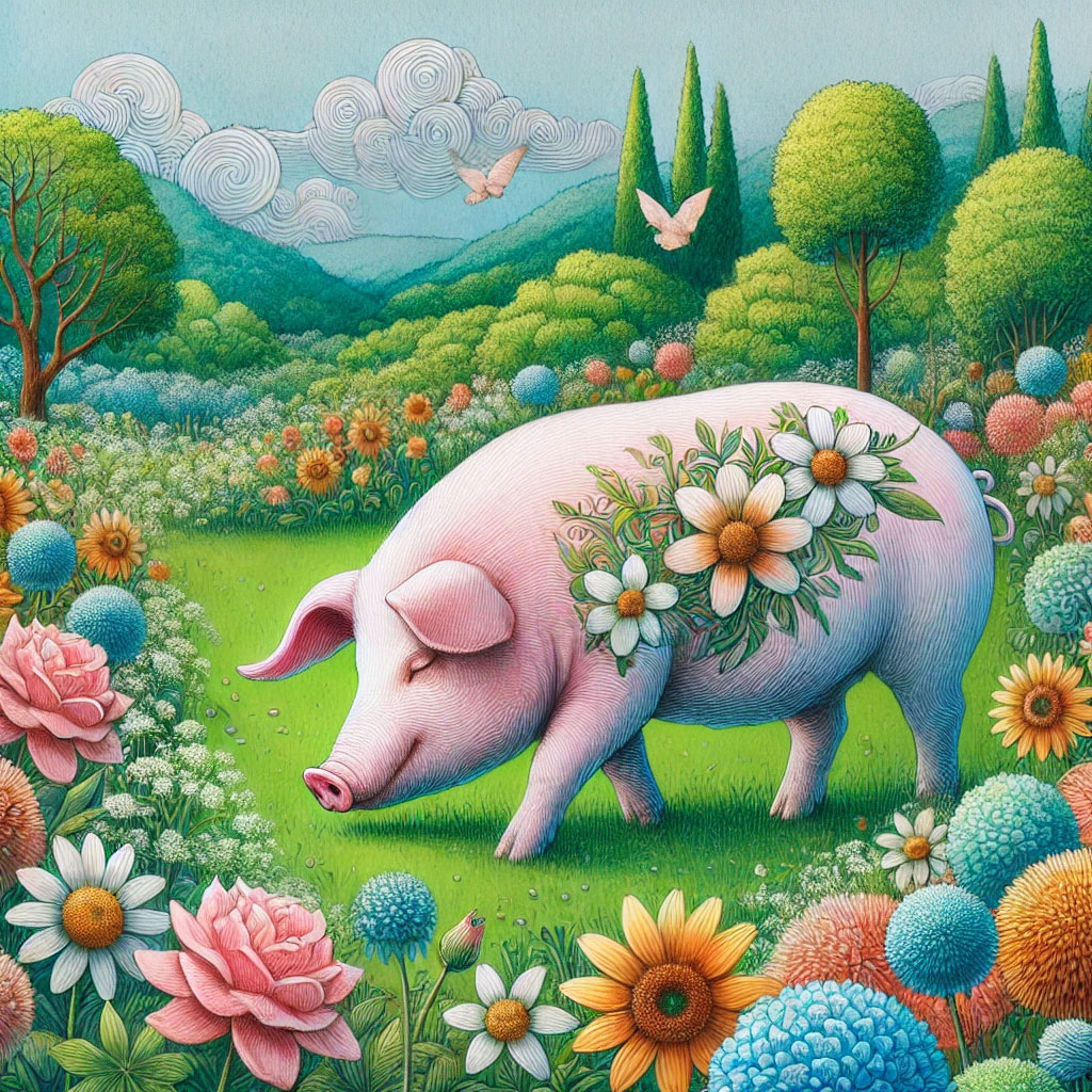 27. 돼지가 꽃밭을 누비는 꿈: 풍요와 행복이 가득한 시기를 맞이하게 됨을 상징합니다.