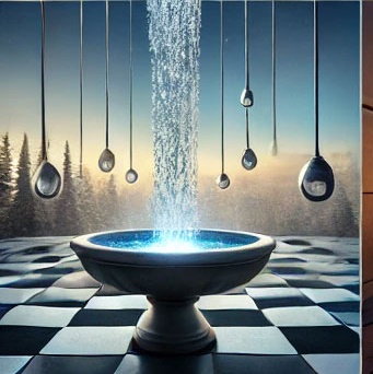 54. 물이 일정한 리듬으로 떨어지는 꿈 (길몽) – 규칙적인 리듬으로 떨어지는 물은 안정적인 발전과 조화로운 성장을 상징합니다.