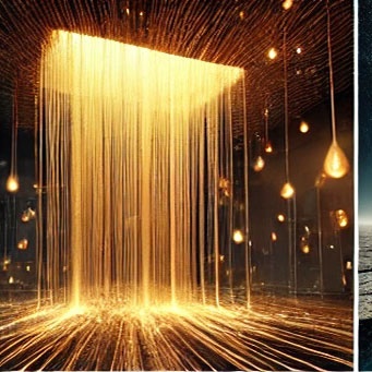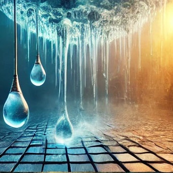 58. 옥상에서 떨어지는 물방울이 아름답게 반사되는 꿈 (길몽) – 옥상에서 떨어지는 물방울이 햇빛에 반사되어 빛나는 모습은 희망과 재생의 기운을 상징합니다.