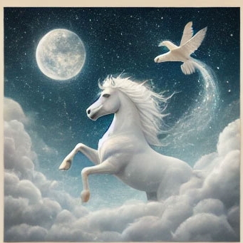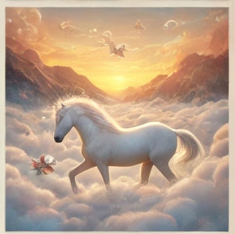 11. 백마가 구름 위를 달리는 꿈 (길몽) – 비현실적으로 보이는 장면이지만, 꿈에서의 이런 이미지는 큰 성취나 신분 상승, 영적 상승을 의미합니다.