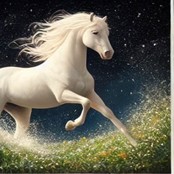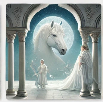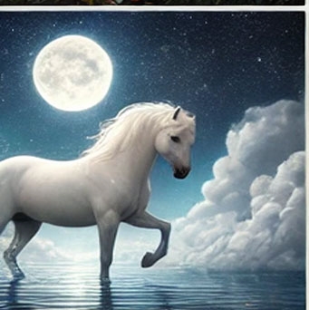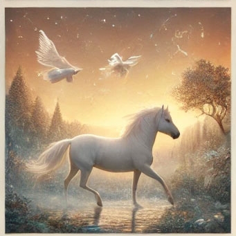44. 백마가 달빛 아래서 빛나는 꿈 (길몽) – 은은한 재물운과 내면의 평온, 그리고 신비로운 영감이 함께 찾아올 수 있음을 의미합니다.