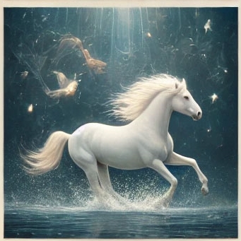 43. 백마가 물가에서 몸을 씻는 꿈 (길몽) – 마음의 때를 씻어내고, 새롭게 시작하는 좋은 계기가 마련될 징조입니다.
