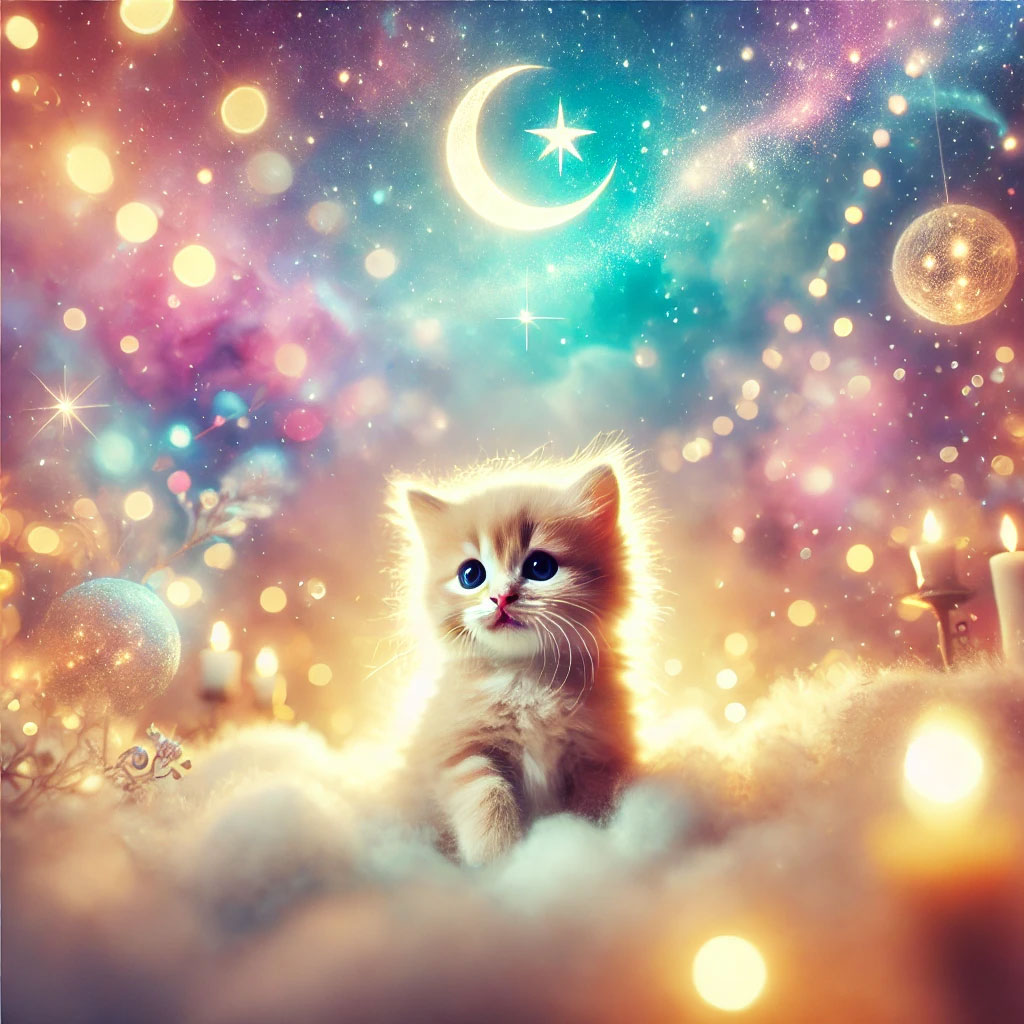39. 새끼 고양이가 부드러운 빛 속에 나타나는 꿈 (길몽) – 따뜻한 빛과 함께 나타나는 모습은 치유와 긍정적 변화, 새로운 시작을 상징합니다.