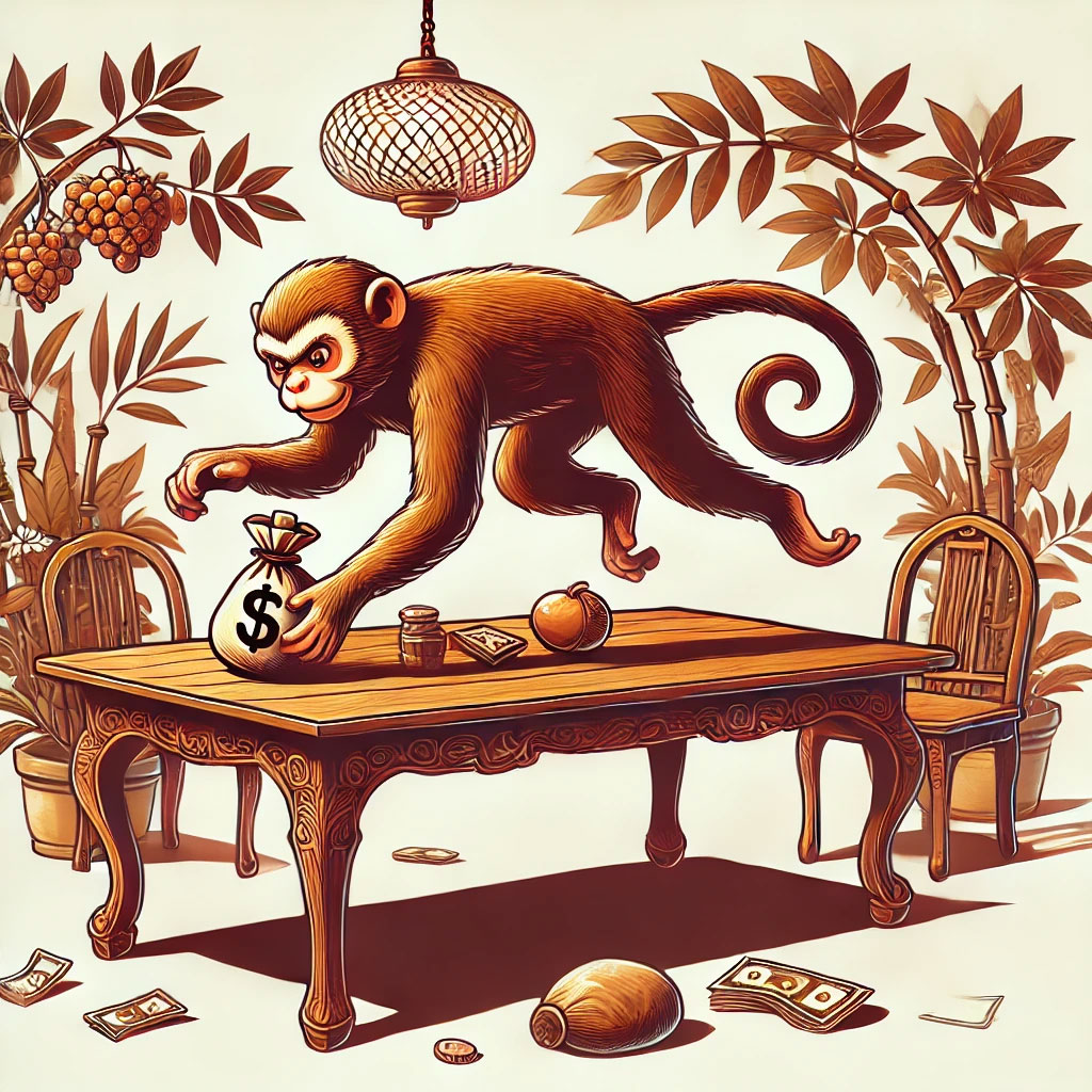6. 원숭이가 물건을 훔치는 꿈:재산상의 손실이나 기회를 놓칠 수 있음을 경고합니다. 주변의 변화에 민감하게 대처해야 합니다.