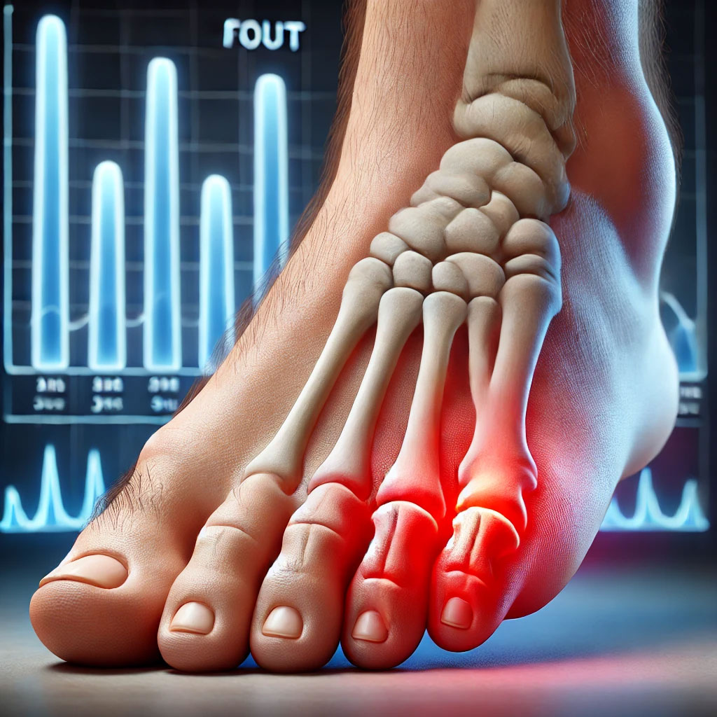 통풍은 혈중 요산 농도가 과하게 올라가, 결정화된 요산이 관절이나 조직에 쌓여 염증을 유발하는 질병입니다. 일반적으로 엄지발가락 관절에서 자주 나타나며, 극심한 통증이 특징입니다.