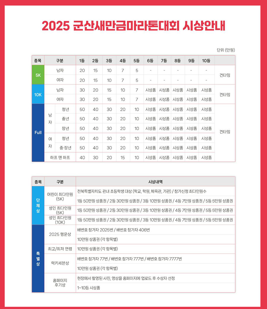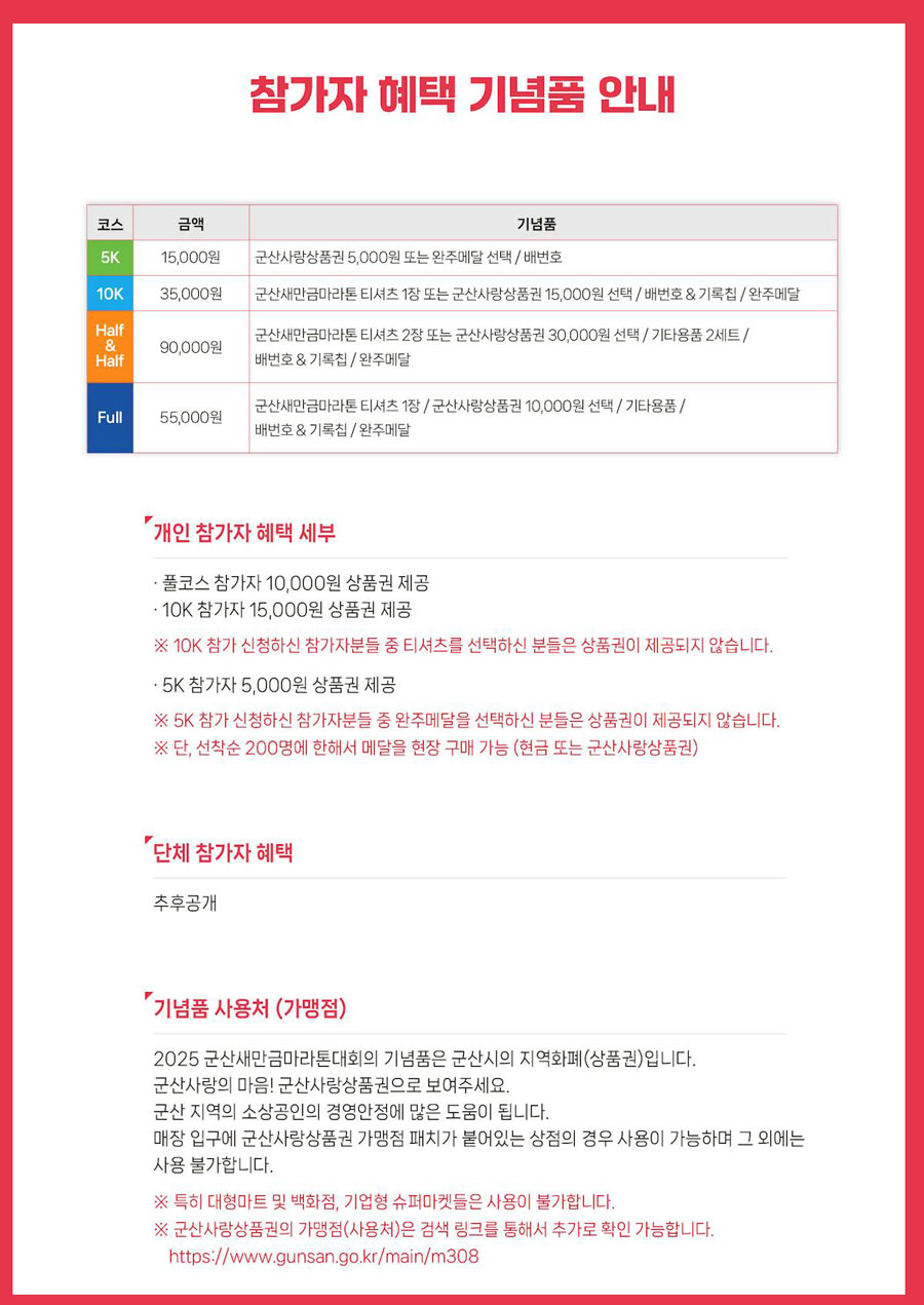 2025 군산 새만금 마라톤 대회에 참가하는 모든 분들께 다양한 혜택이 제공됩니다: